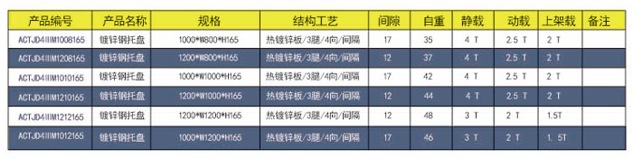 四向三腿——鍍鋅鋼托盤 主要用途: 倉儲(chǔ)、食品車間周轉(zhuǎn)、物流倉儲(chǔ)